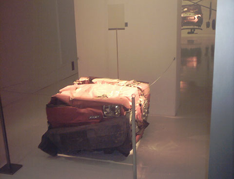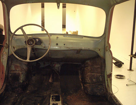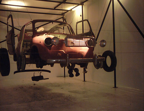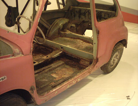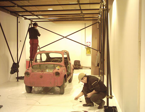"Nell'anno 3000 d.c. la terra รจ priva di popolazione umana, gli alieni scoprono un cubo formato da un ammasso di metallo e provano a ricomporre i pezzi" ed ecco qui il risultato: l' installazione di una Fiat 600L del 1957 esposta per l'occasione